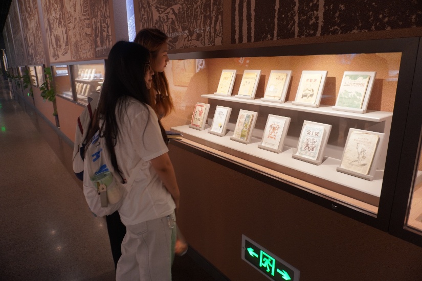 图2 实践队成员在八路军太行纪念馆内观看抗战时期出版物展陈 何凡 供图