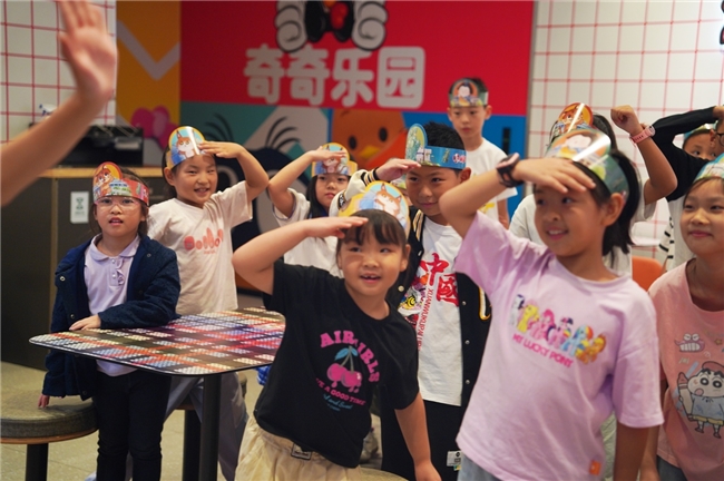 在现场修复“金镶宝石帽顶”的环节中,小朋友们化身小修复师,动手动脑,将“破碎”的文物部件贴纸精心拼接,完成“金镶宝石帽顶”的修复任务,体验文物修复的严谨与成就感。