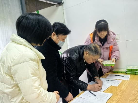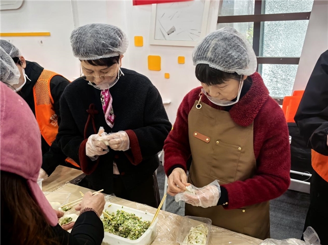除了现场体验活动,社区还将包好的饺子包装好让志愿者发放给社区其他的常住居民,针对行动不便的老人、残疾人还特地安排了上门送饺子。每到一户居民家中,大家都热情地送上节日的祝福。