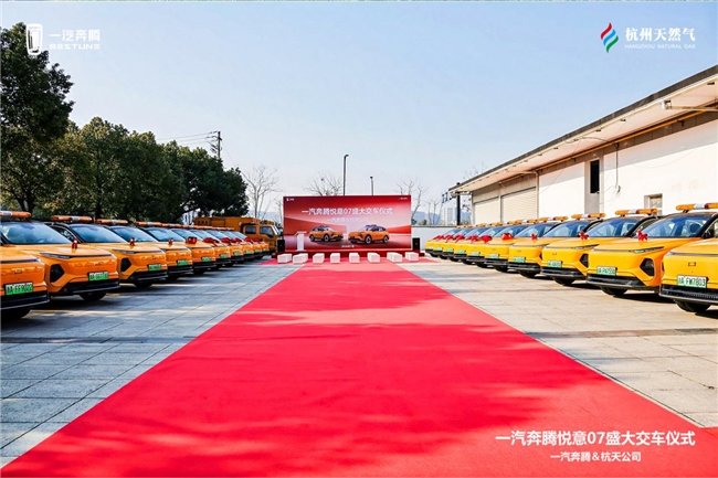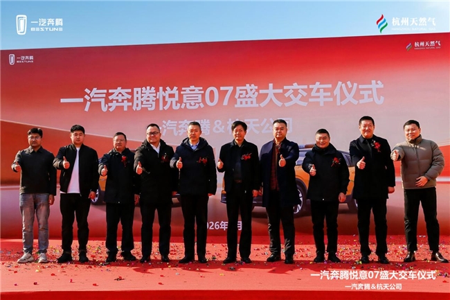此次交付的悦意07车型凭借出色的性能表现、舒适的驾乘体验以及可靠的品质保障,赢得了杭州天然气有限公司的青睐。这不仅体现了悦意07在商用出行领域的竞争优势,也彰显了一汽奔腾"以用户为中心"的品牌理念。
